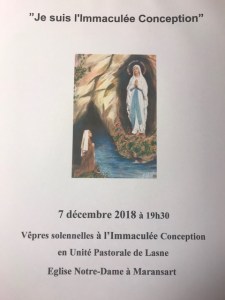 Vêpres à l’Immaculée Conception 07/12/2018 / adminuplasne En Unité Pastorale, vendredi 7 décembre 2018 – 19h30 à l’église Notre-Dame de Maransart. Partager : Cliquer pour imprimer(ouvre dans une nouvelle fenêtre) Imprimer Cliquez pour envoyer par e-mail à un ami(ouvre dans une nouvelle fenêtre) E-mail Cliquez pour partager sur Facebook(ouvre dans une nouvelle fenêtre) Facebook Cliquez pour partager sur WhatsApp(ouvre dans une nouvelle fenêtre) WhatsApp Cliquez pour partager sur Pinterest(ouvre dans une nouvelle fenêtre) Pinterest Cliquez pour partager sur X(ouvre dans une nouvelle fenêtre) X J'aime chargement… Articles similaires