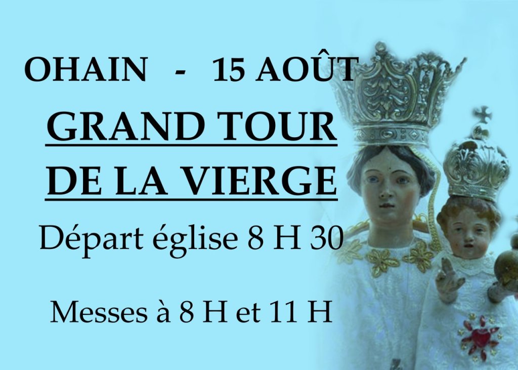Ohain St-Etienne: à 8:00 Messe des pèlerins, puis « Grand Tour de la Vierge » (affiche ci-jointe)